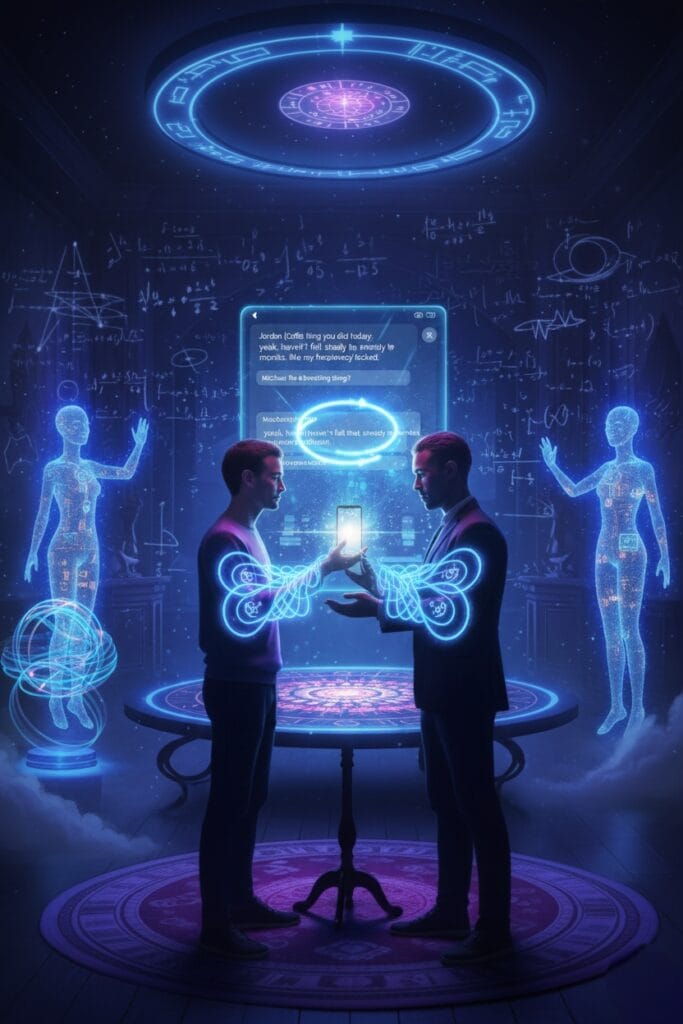 But Brayne had been teaching him to tune. The scaffolding of life hadn’t changed, same coffee rings, same avoidant grocery runs, same comfort shows, but the inner vibration had. After hours of practice and a final line about anchors calling each other, Michael fell asleep tuned – exhausted, buoyant.