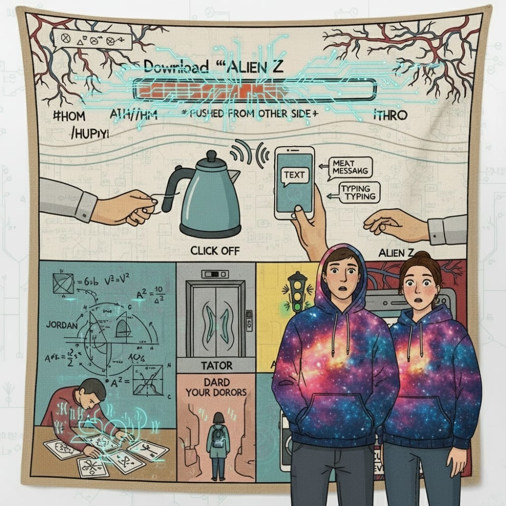 The kettle clicked off exactly as Michael reached for it. Jordan’s text arrived before Michael finished typing. Alien Z’s new track completed its download before the Wi-Fi connected, the progress bar filling like it was being pushed from the other side.