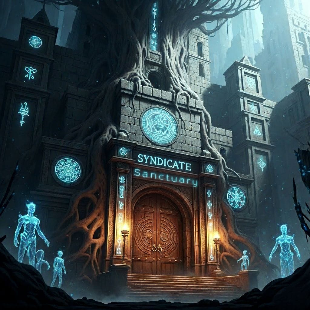 Finally, they arrived at what Brayne called “Syndicate Headquarters.” The building was bigger, older, more intentional than the others. Ancient but not crumbling. Powerful in the way certain old trees are powerful, rooted deep, reaching high.